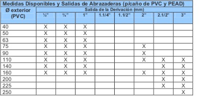 * Aptos para caños de PVC, de PEAD (Polietileno de Alta Densidad), de Asbesto Cemento, De Hierro Fundido (Ver Tablas con medidas disponibles)
