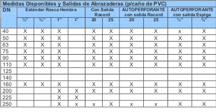 * Aptos para caños de PVC, (Ver Tablas con medidas disponibles)