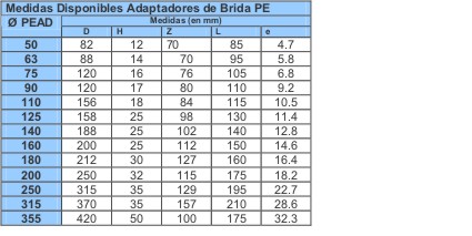 Los adaptadores deben instalarse en forma conjunta con una brida loca.