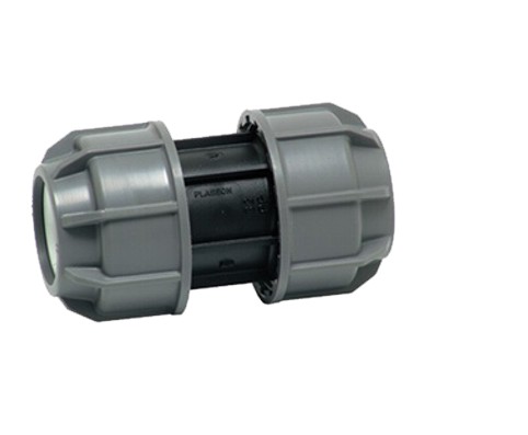 Compuesto de 5 piezas: Cuerpo, tuerca de apriete, anillo de tope, anillo cónico de compresión construido en Polipropileno y el O´ring de N.B.R.