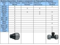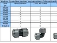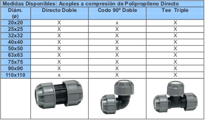 Accesorios Disponibles: Acoples rectos doble, roscados, Codos a 90º dobles y roscados, Tee roscada