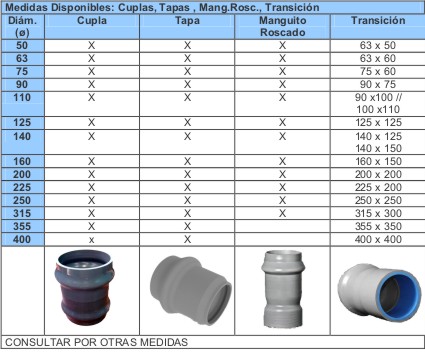 * Accesorios de PVC (Policloruro de Vinilo) con Aro de Goma para tubería de PVC.