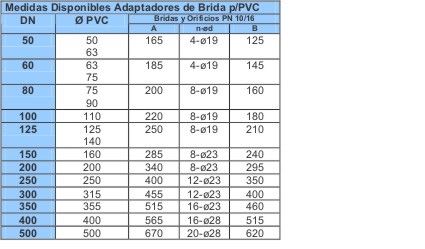 * El adaptador a Brida para PVC se utiliza para unir una brida de cualquier elemento con la espiga de un tubo de PVC