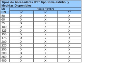 * Compuesto por la silla que contienen la derivación roscada hembra y el estribo ó cincha, que es el que sujeta al tubo